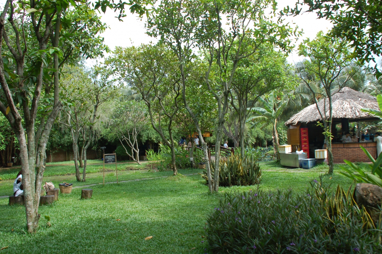 メコン川のオプショナルツアーに組み込まれていたレストラン。観光地のレストランというので、大して期待していなかったが、緑に囲まれた庭園レストラン、といった風情で、何枚も写真を撮ってしまった。エレファントフィッシュも名物というだけあって、美味しい。