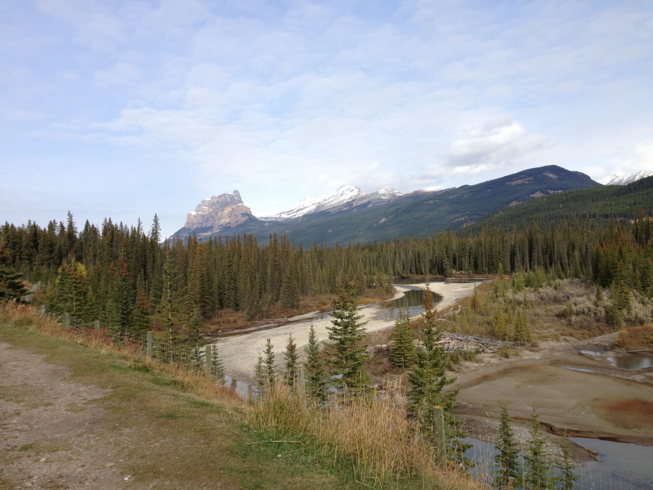 街中を流れる部分でも護岸整備はなされておらず、自然のままの雄大な滔々たる流れを目にすることが出来ます。一歩バンフの街を離れたらより一層の自然のままの美しい流れを堪能出来ます。水も透き通り綺麗ですが身を切るような水温の冷たさには驚きました。