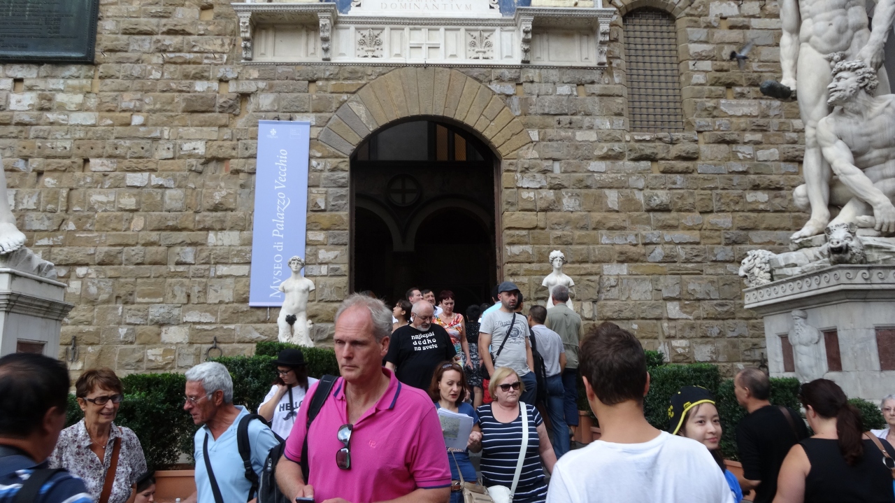 シニョリーア広場にあります。14世紀頃に建てられ16世紀に大改修されたそうです。今も市庁舎として使われているそうです。残念ながら中には入りませんでしたが、入口に飾られたアダムとイヴの像がとてもユニークでしたよ。