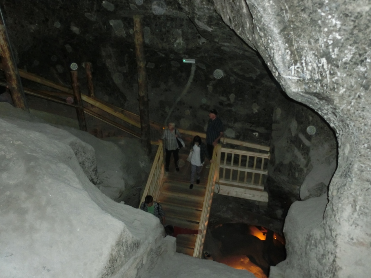 私は10:30の英語ガイドツアーに参加(15-20名程度)しました。個人での見学は出来ず、見学ツアーに参加しないと入場できません。2時間ぐらいかけて、岩塩抗内を巡ります。私たちのグループを担当してくださったガイドさんは声も大きく聞き取りやすかったです。岩塩抗内は、岩塩で出来た彫刻のレリーフ、マネキンを使っての再現、機械や器具の展示などテーマパークの様でした。