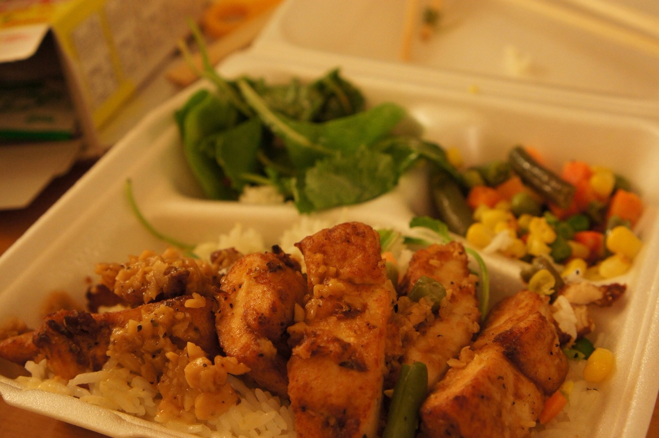 ここのプレートランチは美味しく、滞在中2回も利用しました。2回ともホテルにお持ち帰りして、部屋で食べました。基本的に、メインはチキン、ステーキ、シュリンプの3種類があり、それぞれ様々な味付けのメニューが用意されています。私たちはガーリックシュリンプとガーリックチキンを食べました。どちらもガーリックの風味がかなり効いていて、とても美味しかったです。ボリュームもかなりありますが、大人2人で1つだと少し足りないかなといった感じでした。