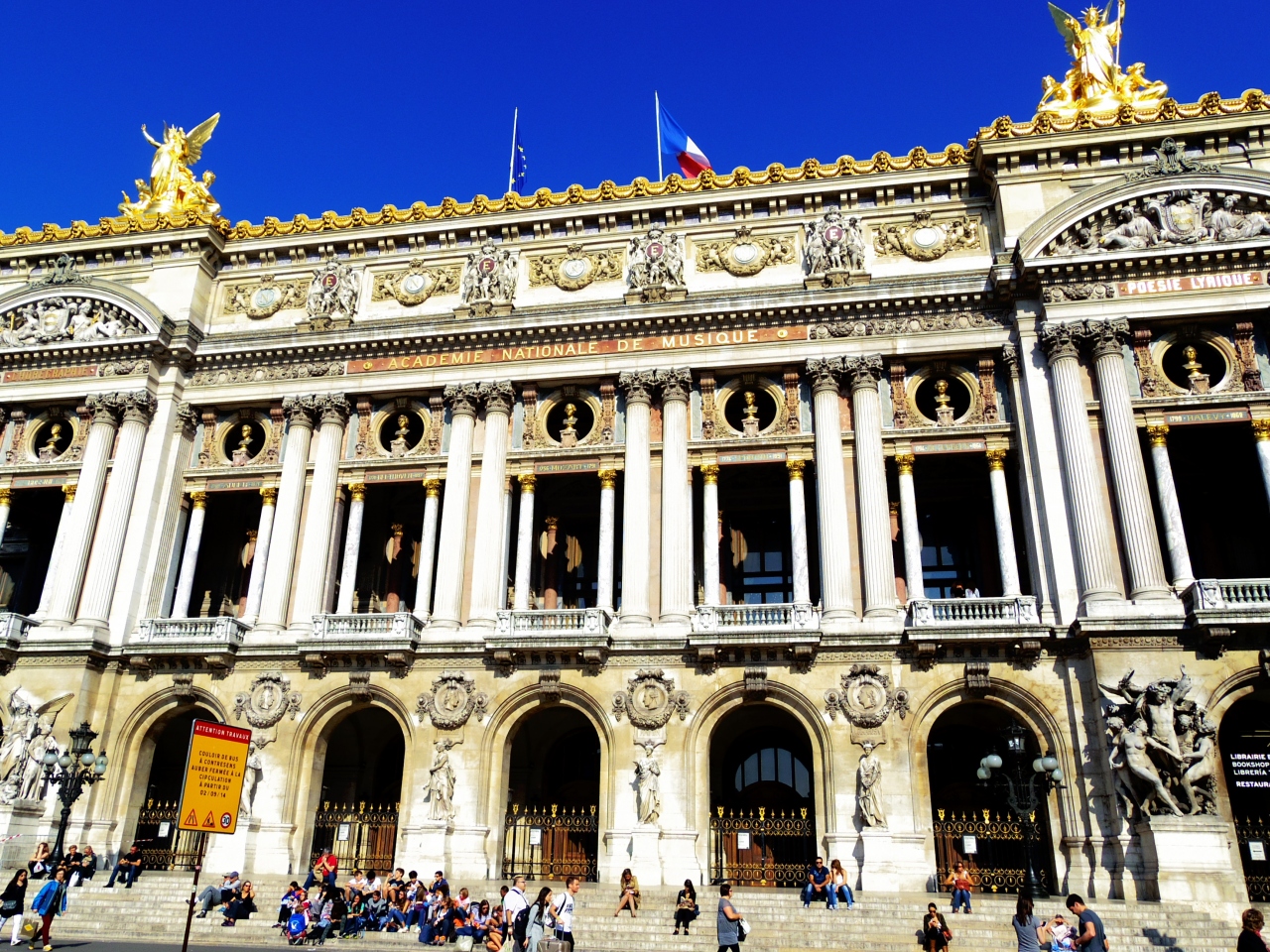 パリの中心部にあります。ガルニエ作のオペラ座はとても豪華です。講演のチケットはかなり人気のようなので早めに予約しないといけないそうです。まわりにはショピイングモールなどがあり買物エリアとしても人気です。