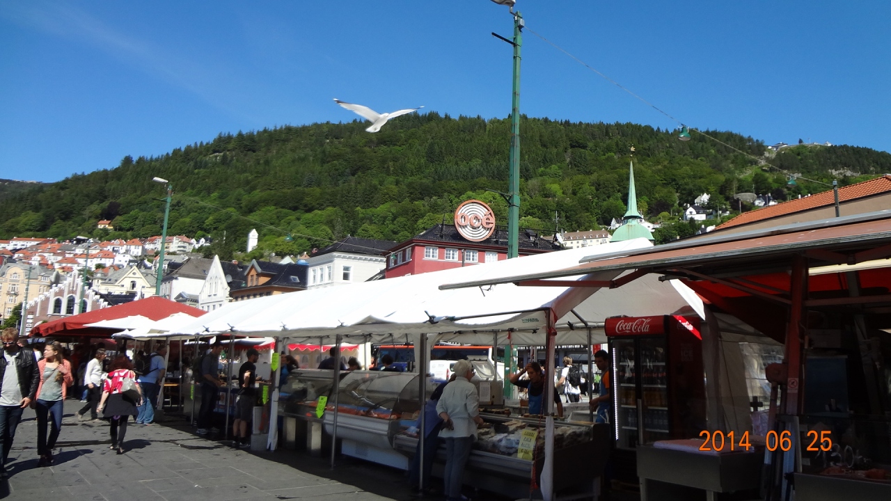 食べ物もビールも高いが、一度はトライしたい所。フロイエン山から歩いて下りた後、軽くつまみながらビールでのどを潤した。これが実に美味しい。特にサーモンは新鮮で感動的。願わくは、値段を気にせずカニやロブスターも味わってみたかったかな。