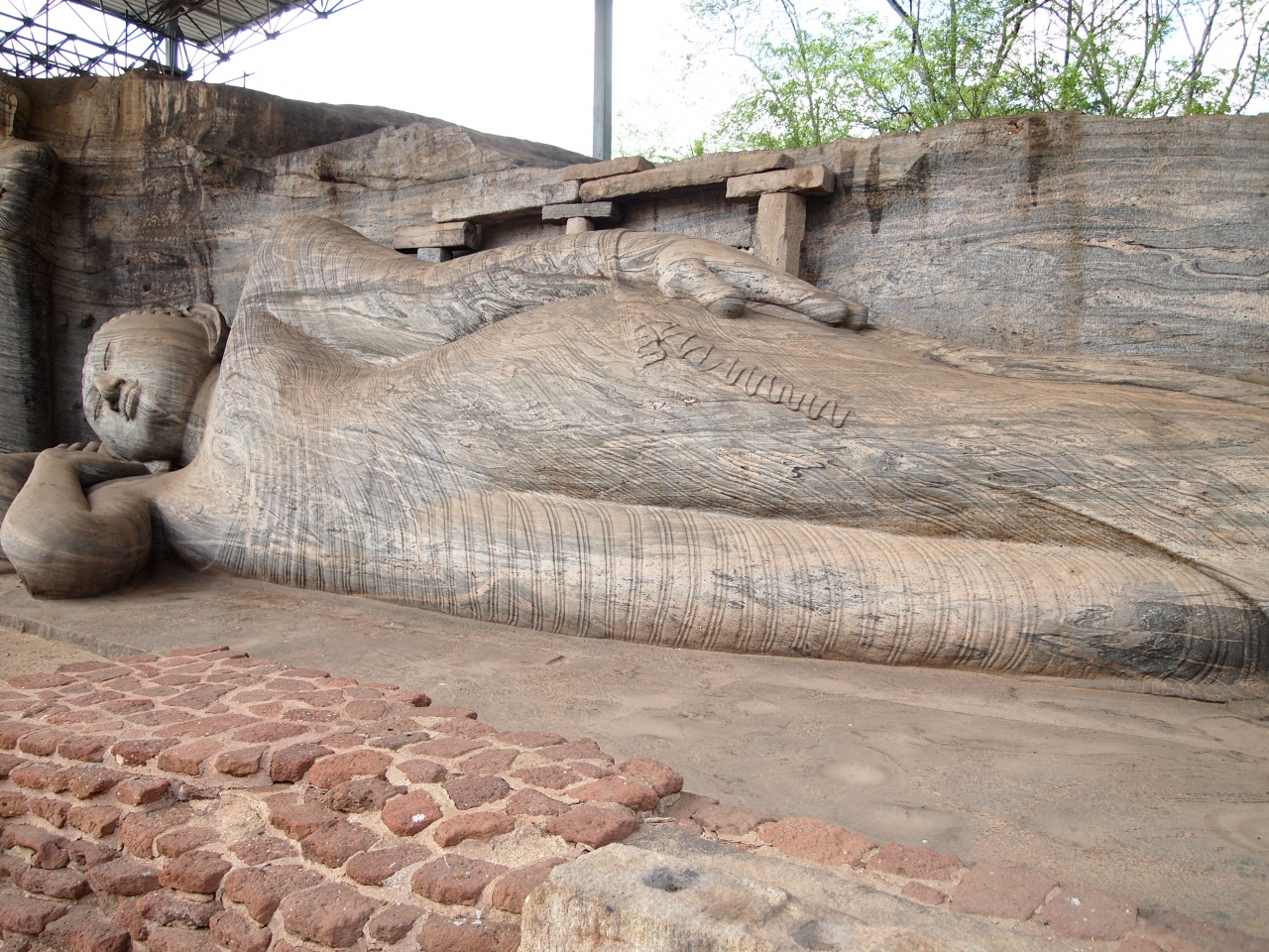 ガイドブックでは涅槃像の全長は14m、立位像の高さ7m、