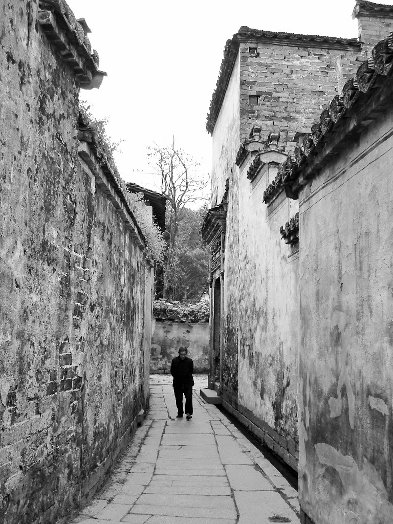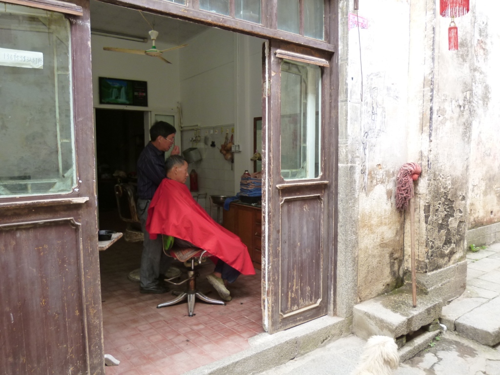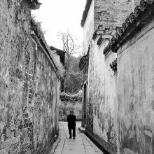 安徽省の古村の中ではそれほど知られてはおらず、それが却ってこの村の雰囲気を観光客づれしない、古い中国の農村のままに留めているのかもしれません。村を散策すると、なじみ客相手の床屋や川で洗濯をする老婆の姿を目にします。また、昔の豪商の家でしょうか、文化大革命の頃に破壊した鴨居のレリーフなど、1966年からの文化大革命の傷跡も残ります。村の老人達はそうした過去を心の奥にしまいこみ、まるで何事も無かったかのように残り僅かな時を静かに過ごしています。