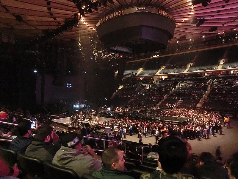 ライブ鑑賞に訪れました。本来、NBAのニューヨークニックスの本拠地というだけあって、バスケットコートであるアリーナの周辺に客席がありますが、1階スタンドはさほど遠くありません。この場所はライブ、スポーツ、様々なイベントで有名ですから、訪れたことが無くても思い入れがある方も多いのではないでしょうか。ただ、ライブやバスケ鑑賞はそれなりの対価がかかりますので・・・大分事前の計画のほうが、お財布には優しいようです。