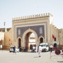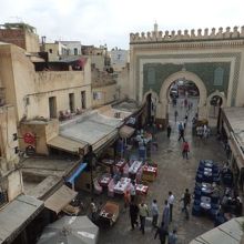 門の近くの2階以上のカフェのテラスから人の行き来を見ながら