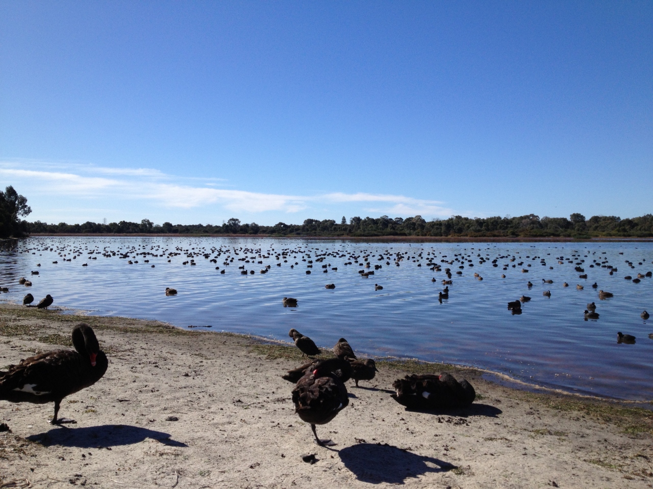 パース近郊の湖ですが、ここへ公共交通機関で行くためには電車マンジュラ線のコックバーンセントラルからバスに乗り換え30分ほど行く必要があり、なかなか観光客は行かないところだと思います。それほど大きくない湖ですが、水鳥たちが多くいて天気の良い日などはのんびり癒されます。