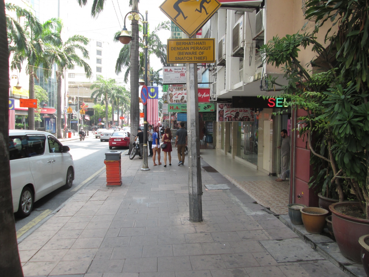 滞在中毎日利用した通りです。北側の駅周辺はおしゃれなショッピングセンターがあり、若者を中心に人が集まっています。南側は、インド、中東系の店があったり、中国系の店が並んでいます。中国系の店にはマッサージ店があり、ボディマッサージ90分が105RMでした。