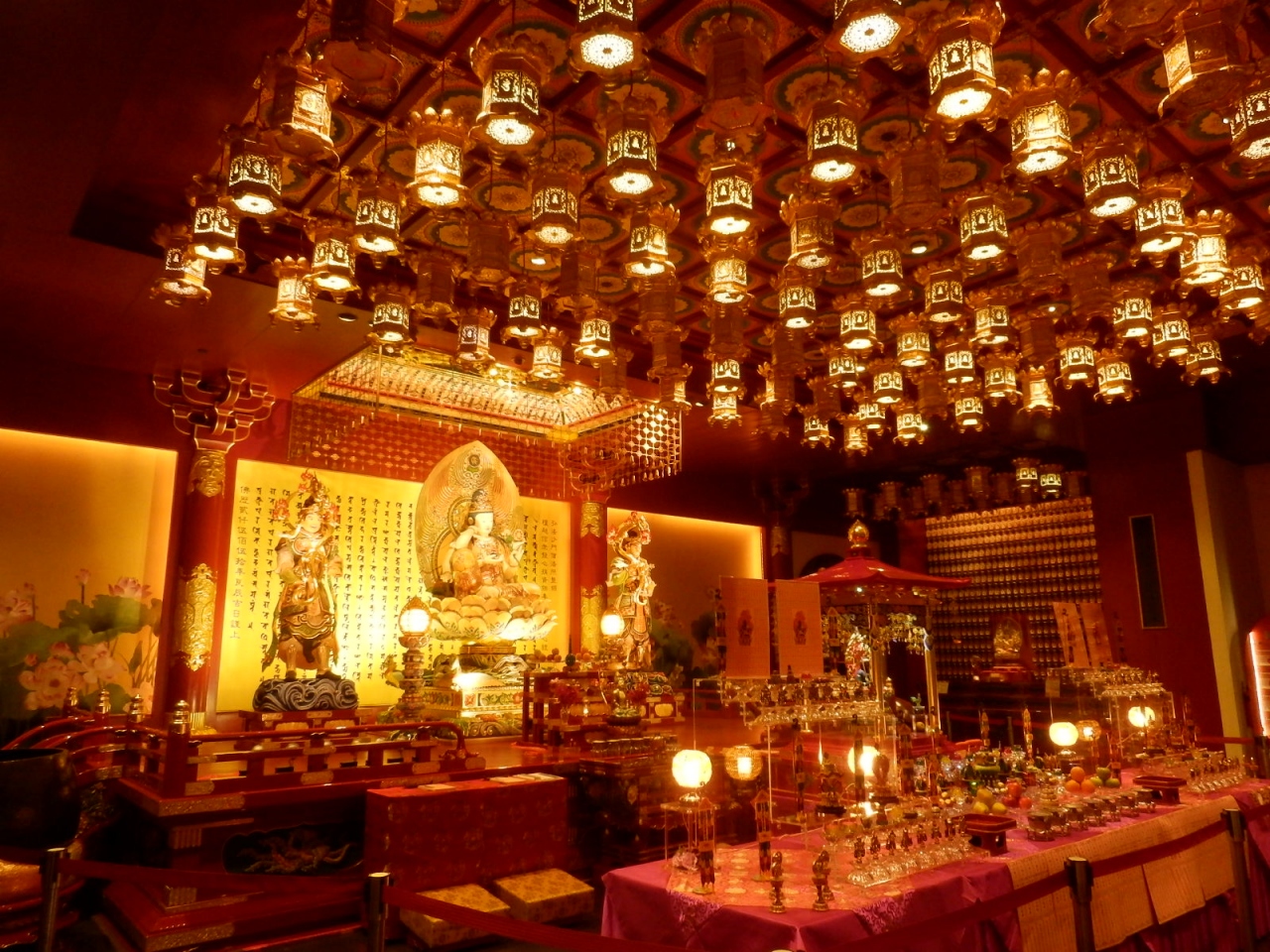 1階は広いホールになっていて、絢爛豪華な雰囲気に驚きました。また、屋上は庭園のようになっていました。それ以外のフロアは美術館のようになっていて、仏像などが展示してありました。お寺というよりも、仏教系の美術館を訪れたような気分で、とてもおもしろかったです。
