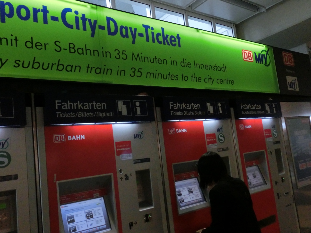 ジャーマンレイルパスのバリデーションとミュンヘン市内までのチケット購入(Airport city day ticket, Partner 19.6ユーロ)を一度に終わらすことが出来てほっとしました。
