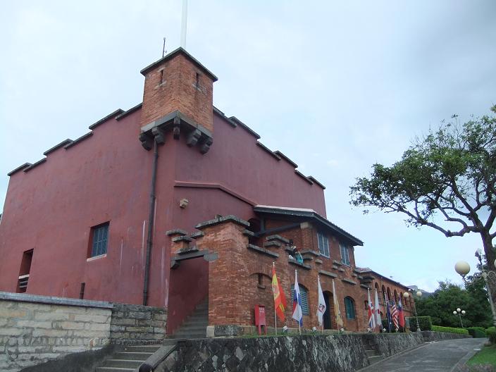 淡水駅から歩いて20位かかりました。メインストリートをブラブラと散策しながら歩き、結構歩きました。スペイン人が建てたお城との事です。入口から坂を上って行くとお城があります。丘の上にあるので見晴らしのいい景色が見られます。お城の隣には旧イギリス領事館がありこちらの方が大きくて立派でした。