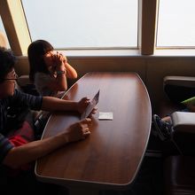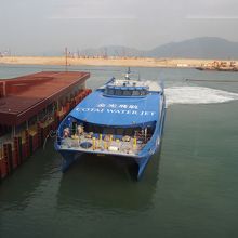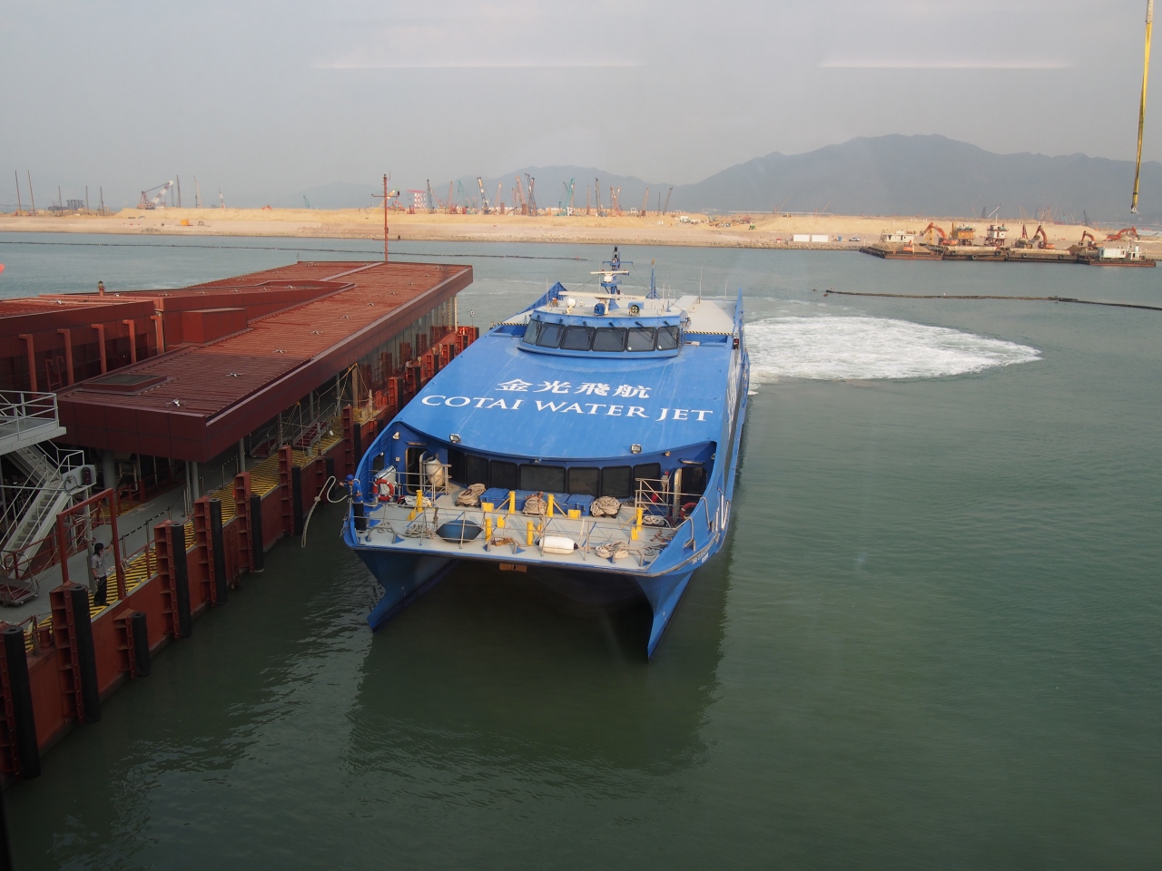 行きは香港国際空港からマカオのタイパへ、スカイピアはとても綺麗です。乗船券ですがエコノミークラスを購入しましたが、案内されたのは恐らくスーパークラス、他の人もみんなスーパークラスに座ってました。座席は指定席です。広くてゆったり、4人がけのボックス席に座りました。ジュースとお菓子がつきます。トランジット扱いなので荷物の移動は無し。揺れは少しだけで快適でした。帰りはタイパから香港の中環へ、帰りはファーストクラスを購入。予約していた乗船時間より少し早く着いてチェックインすると1つ前のフェリーに乗れました。揺れて揺れて、息子が船酔い、途中で酔い止め薬が効いて落ち着きました。座席は行きと一緒で広くてゆったり、ジュースとお菓子ありました。荷物はフェリーまで自分で運びます。乗船してすぐのところにスーツケース置き場がありそこに置きます。ファーストクラスは2階です。行きも帰りも乗船時間は45分くらいだったと思います。