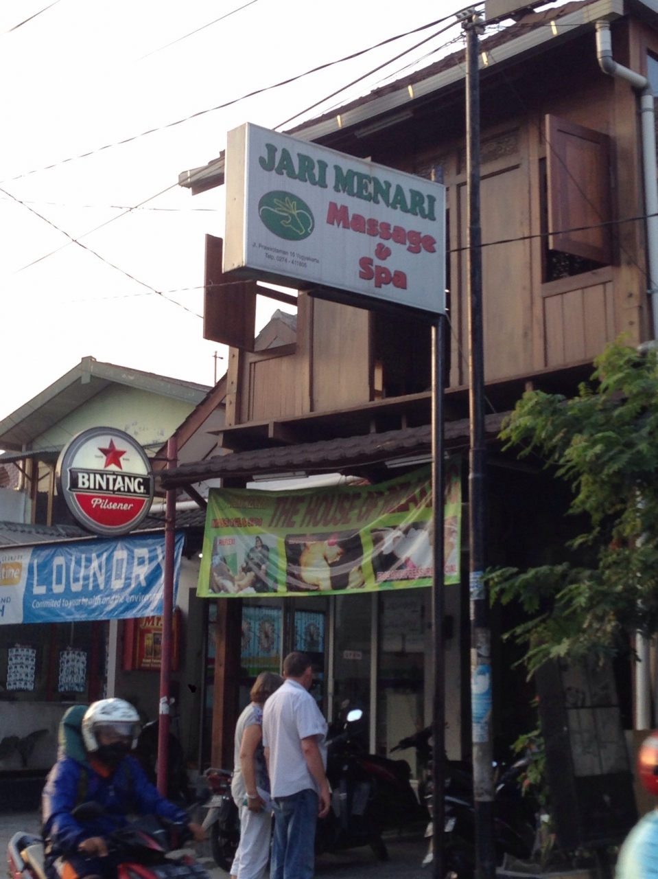 マリオボロ通り方面からは距離があるので静かで欧州系外国人の利用客が多く見られました。ホテルだけでなくマッサージやカフェ、バー、ランドリーサービス店がありました。ATMのキャッシング限度額が街中だと50万ルピアですがこの界隈は120万ルピアなので多く必要な時に便利でした。