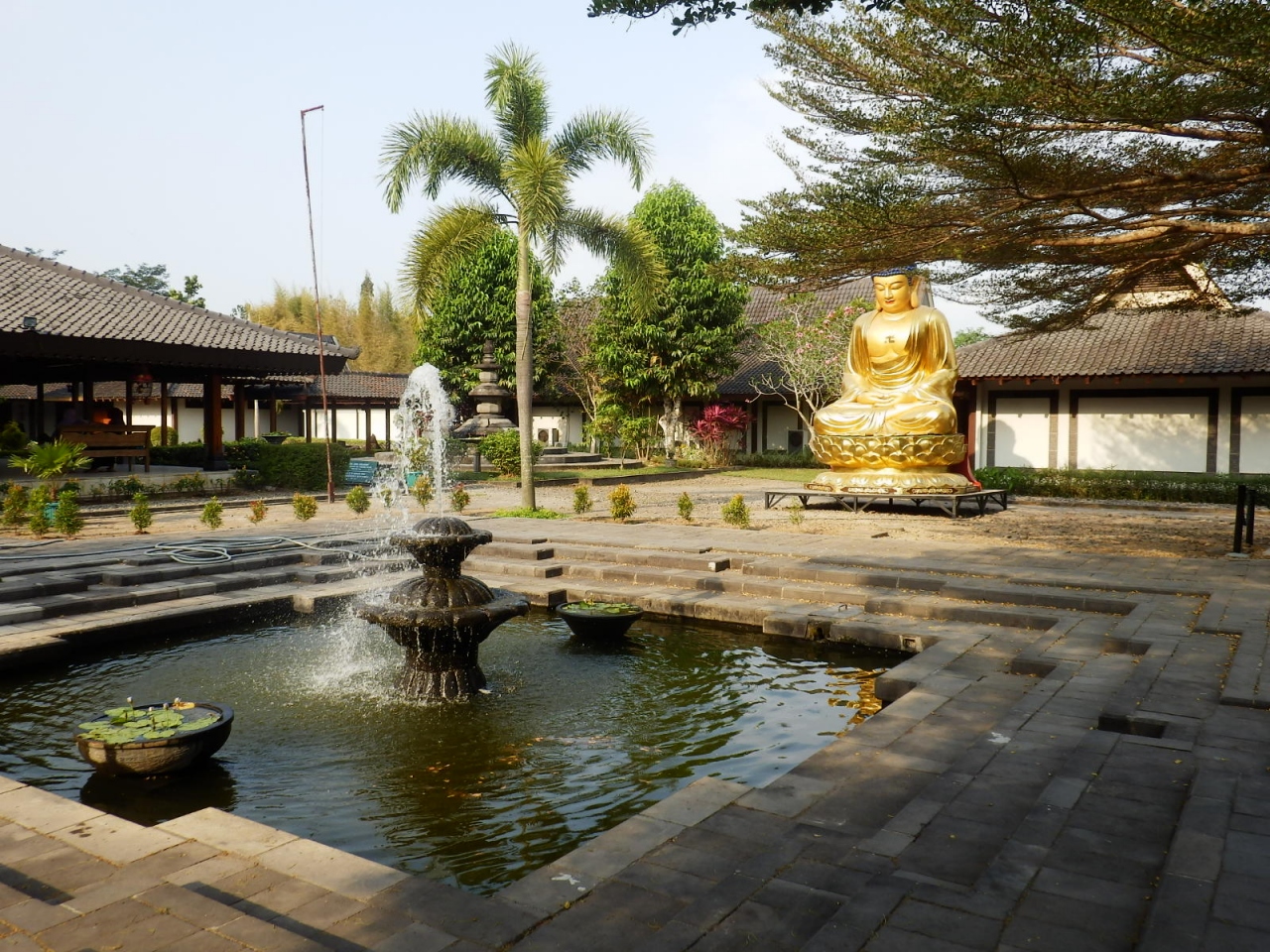 ゲートから大通りをまっすぐ進むと正面にボロブドゥール寺院がそびえ建っていました。寺院への入口と出口は分かれていて、出口にはお土産屋さんがずらっと並んでます。それを抜けると、綺麗な芝生が広がる公園で、園内には入場無料の博物館が2つありました。ゲートに近い方の博物館は綺麗で大きく、一休憩するにも良い場所だと思いました。