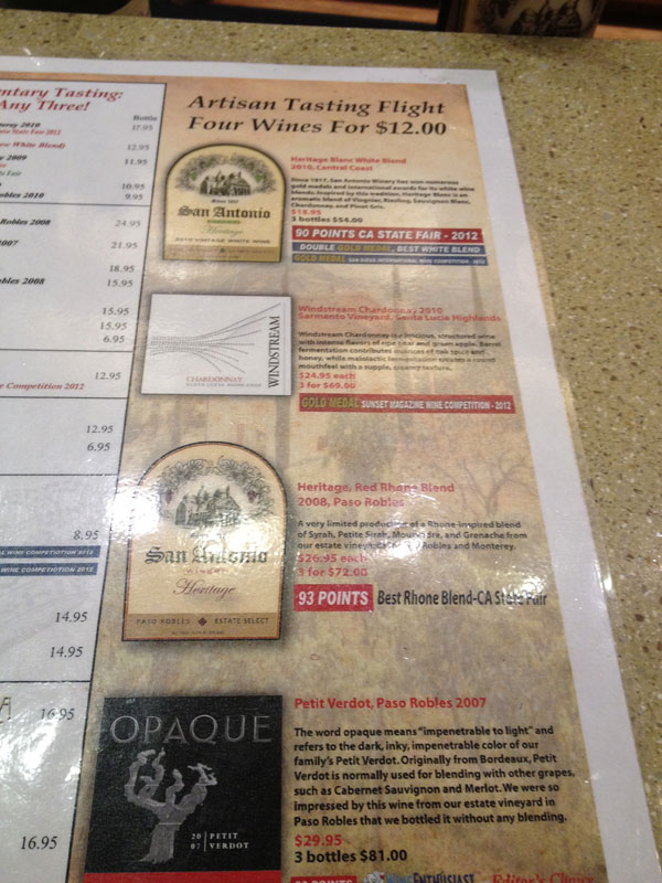 店員さんのサービスがすごく良くて、一応12ドルで4杯のテイスティングを頼んだのに4杯以上試飲を楽しませてくれました。おつまみ付き。