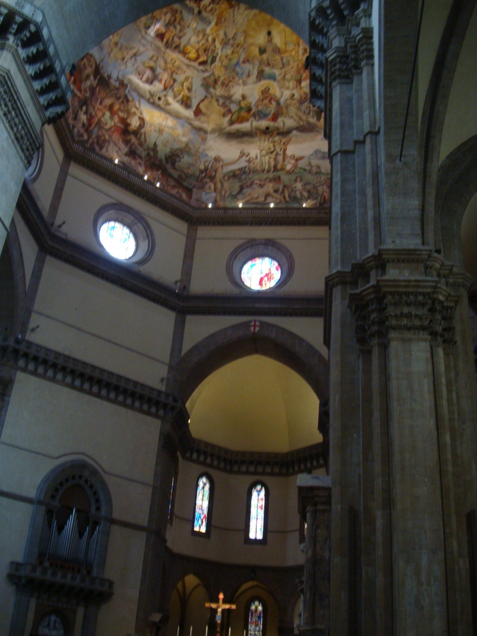 入場するには行列がありましたが、10分ほどで入れました。内部は素晴らしい天井画やステンドグラスに彩られ、ベンチに座ってゆっくりと時間を過ごすのがおすすめです。柱で作られた高い空間は意外にも質素で直線的な気がしました。