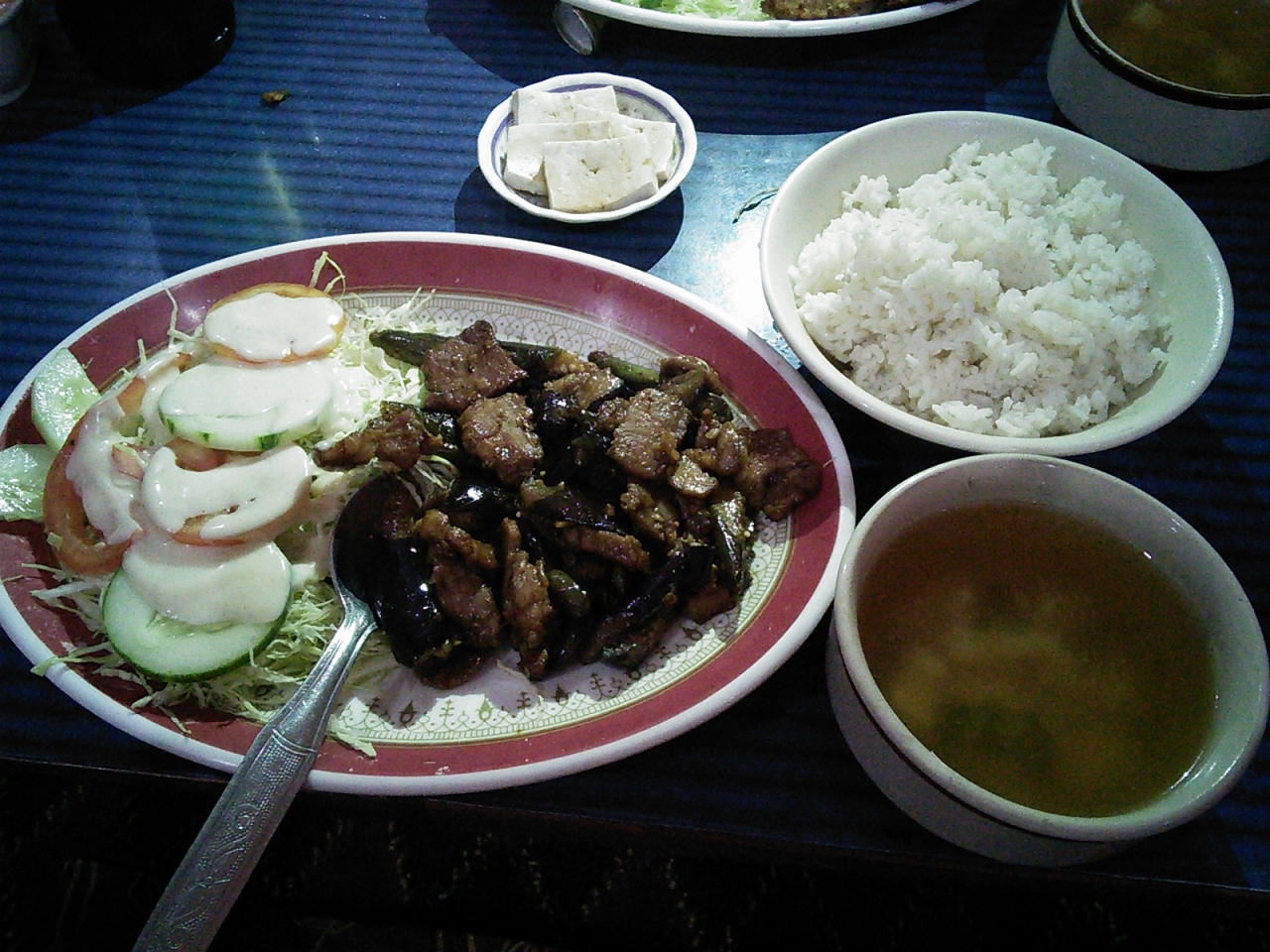 後日「なす味噌いため定食(250Rs)」を食べましたが、とんかつ定食を上回るおいしさ。なすとぶた肉と味噌の相性が抜群です。私のイチオシです。