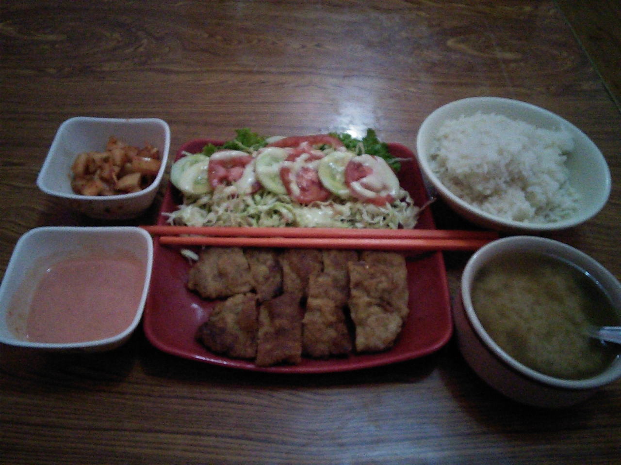 店構えからして“なんちゃって”日本食かと思っていたら結構まともでした。とりあえず「とんかつ定食(250Rs)」をオーダー。まず驚いたのは品数の多さ、メニューに書いてないキムチが付いていてこれがうまい。オーロラソースのようなもの。味噌汁もちゃんと出汁が効いていてまたこれもうまい。ご飯は少しパラパラですがまずまず合格点。メインのとんかつはパン粉のころもではなく竜田揚げのような感じでしたがこれはこれでうまい。サラダもたっぷりありどれもケチをつけるものはありませんでした。しかもブラックティーをサービスで出してくれご飯のおかわりも無料でしてくれました。まさにパーフェクト。これでサービスチャージなしの250Rsですからちゃんとした日本食レストランに行くよりかなりお値打ちです。1回行っただけで大ファンになってしまいました。