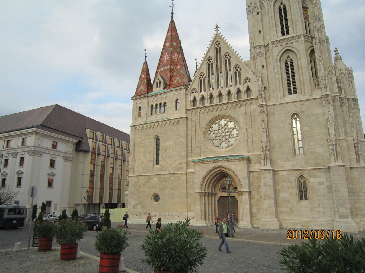 ブダ地区の王宮の丘に漁夫の砦と並び建っています。1741年にマリア・テレジアがハンガリー女王として戴冠式を行った白亜の殿堂のような教会です。約千年の歴史が詰まった教会は、その外観からはうかがい知ることはできません。教会入口にある塔の階段に座り、しばらくの間、道行く人々に目をやりながら脚を休めました。