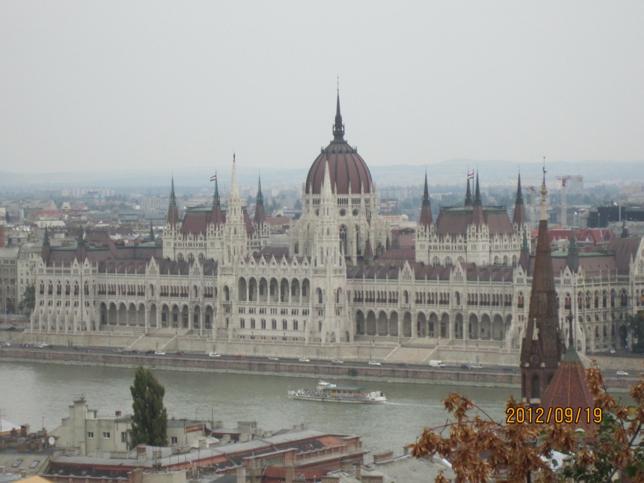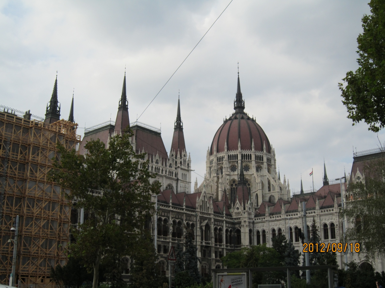ブダペストのドナウ川の岸辺に建つ宮殿のような建物で、メトロの駅から地上に出ると目の前にあります。訪れた時は中に入れず、手前の公園でのんびりと時を過ごしました。建物の近くでは全体像がわかりませんが、王宮の丘からは美しい全景を見ることができました。