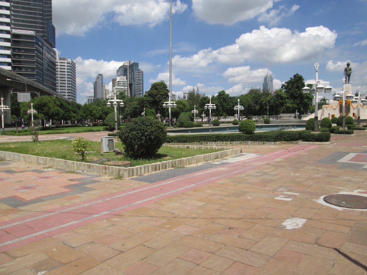 金曜日のルンビニ公園に訪問しました。週末には屋台が出店しイベントが開催されますが、平日は静かな公園でした。平日にもかかわらずラーマの銅像には熱心に参拝する人がいて、彼の銅像の前にはお供え物がたくさんありました。