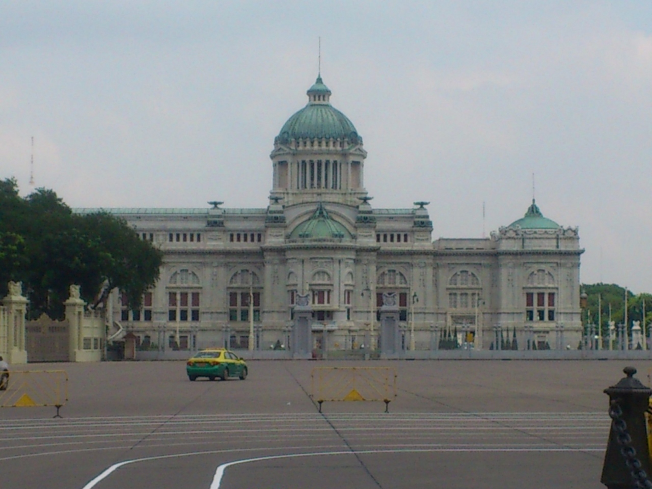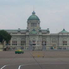 チトラダ宮殿やウィマンメーク宮殿など、王室の施設が多くある場所に有ります。建物の前は、だだっ広い広場(道路)になっており、正面からの眺めは、非常に美しいです。元々は、ラマ5世が迎賓館として造ったそうですが、その後、国会議事堂としても使用されました。現プミポン国王が在位60年を迎えた時の祝賀式典では、国王陛下がこの建物のテラスに姿を見せられ、国王陛下のシンボルカラーである黄色いシャツを着た人達が、前の広場だけではなく、そこから続く、ラジャダムヌン通りをも埋め尽くしました。