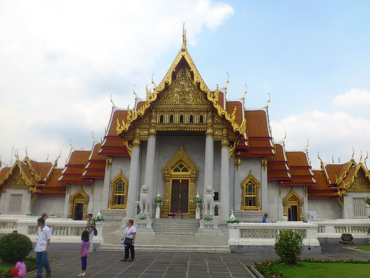 アナンタサマーコム宮殿から程近い、シー・アユタヤ通りにある寺院です。ヨーロッパの影響がそこここに見られ、一般的なタイ風寺院とは、ちょっと異なります。正面からみた姿が、とても美しい。ラマ5世時代に、イタリアから輸入した大理石で造られたそうです。