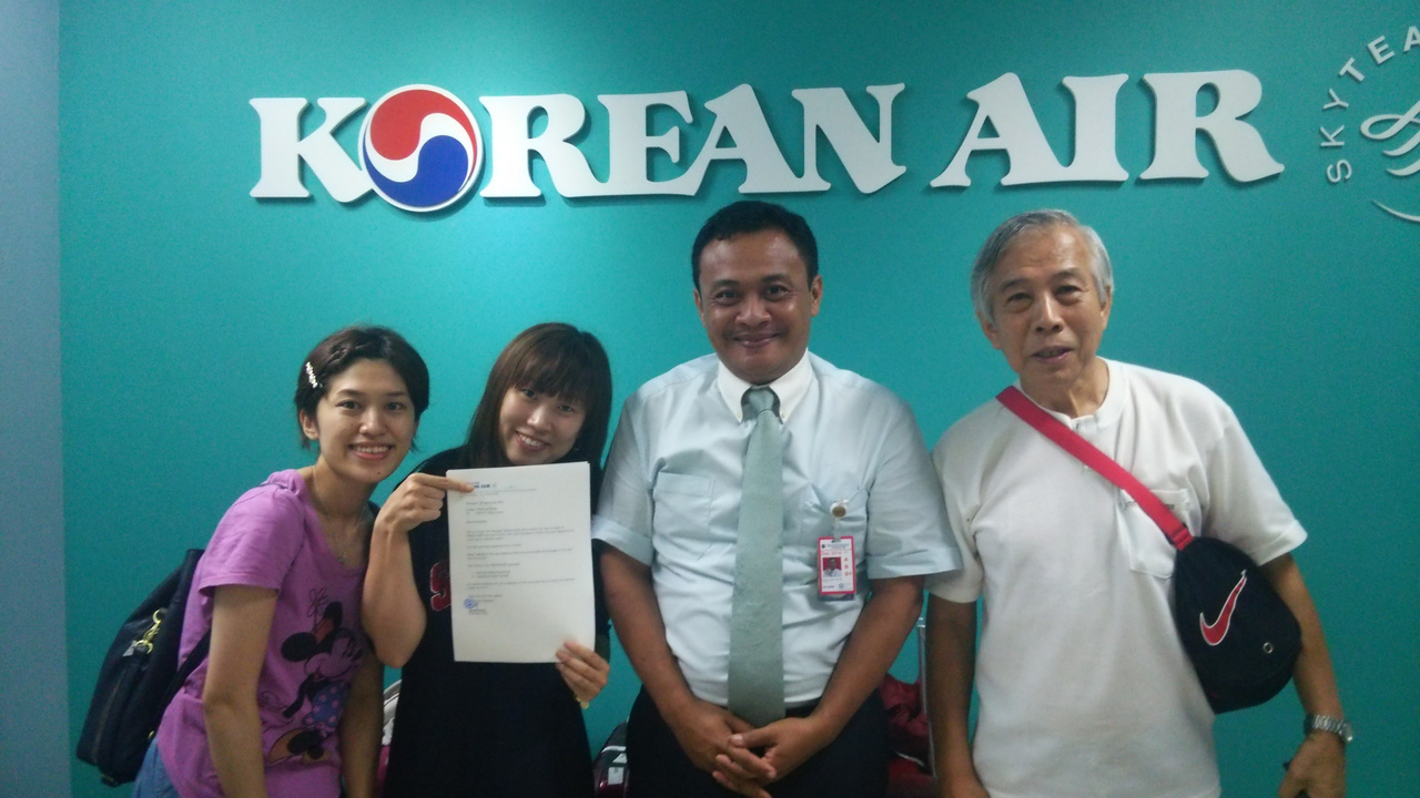 空港の中央辺りの二階に大韓航空の事務所が有るとの事、行きましたが、書類の雛型が無く、新規作成です、一時間以上掛かって、やっと貰えたのが、写真の証明書です。今回作った雛型をパソコンに取り込んでいたので、