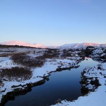 朝一番で行ったので、何もない雪原から朝日をここで見ることがでました。