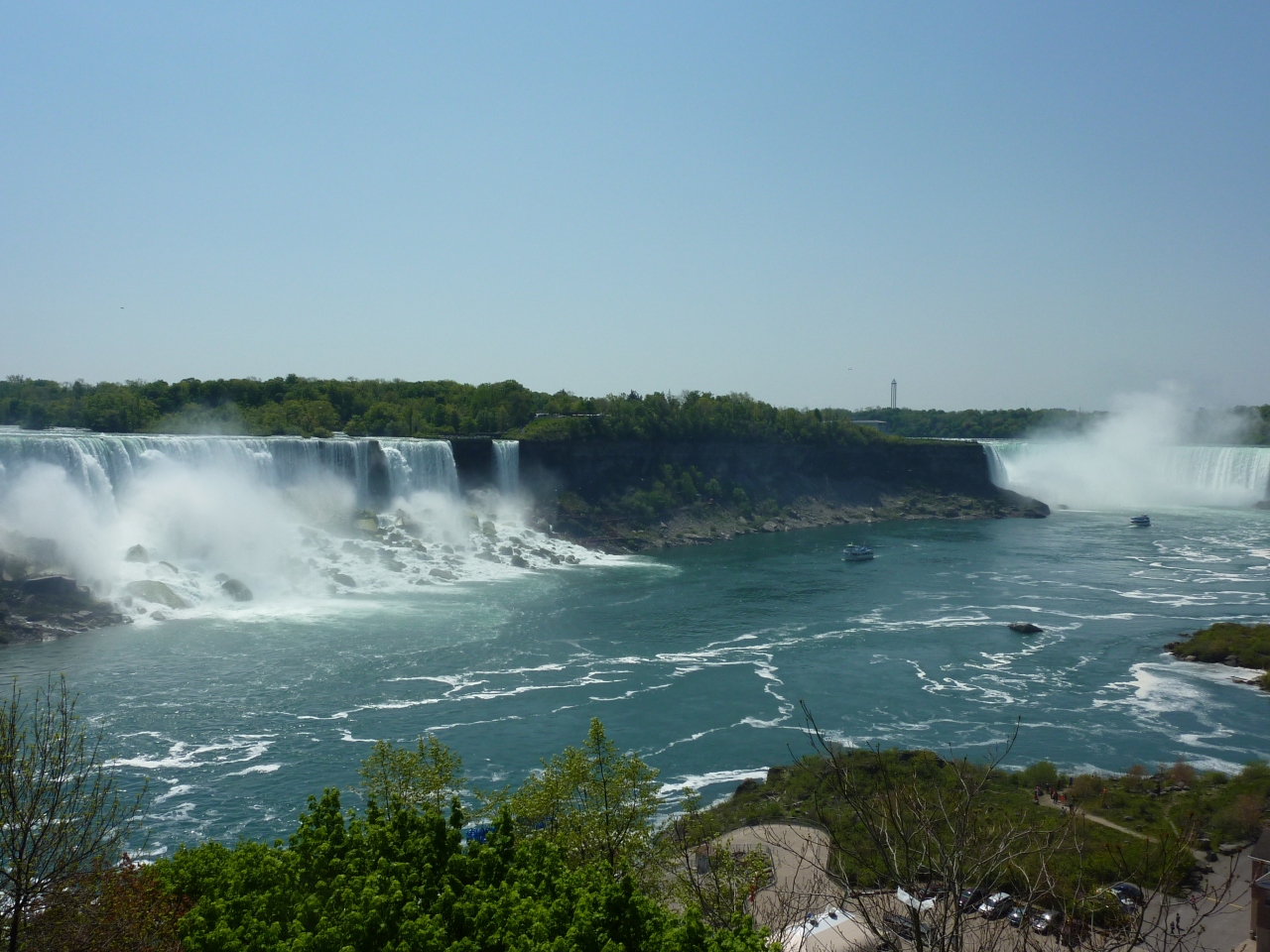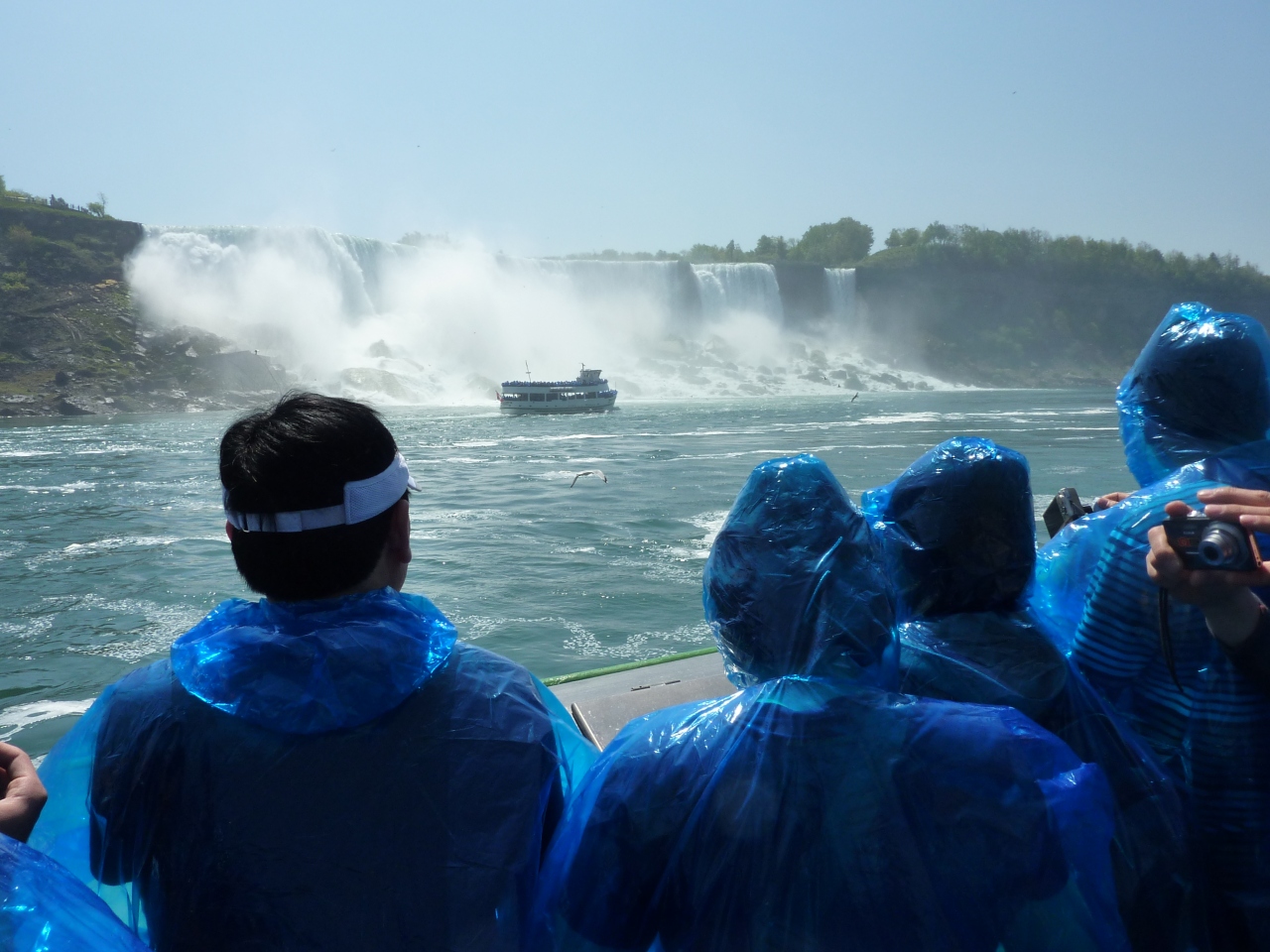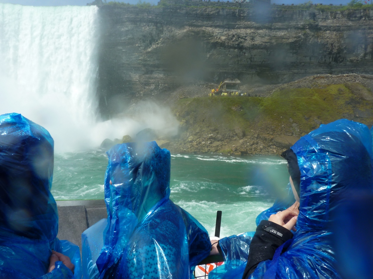 ナイアガラに行ったら一度は乗ってみる価値のあるボートです。アメリカ滝のすぐ横を通過し、カナダ滝の真下まで行きます。滝壺の流れは渦を巻き、流れ落ちてくる水流に巻き込まれそうに感じます。水しぶきがシャワーのように降り注ぎ、カッパを着ていても風邪で巻き上げられ、全身びしょ濡れになります。カメラのレンズも水を浴びるので、防水仕様のカメラ以外は滝壺近くでは使わない方が良いと思います。