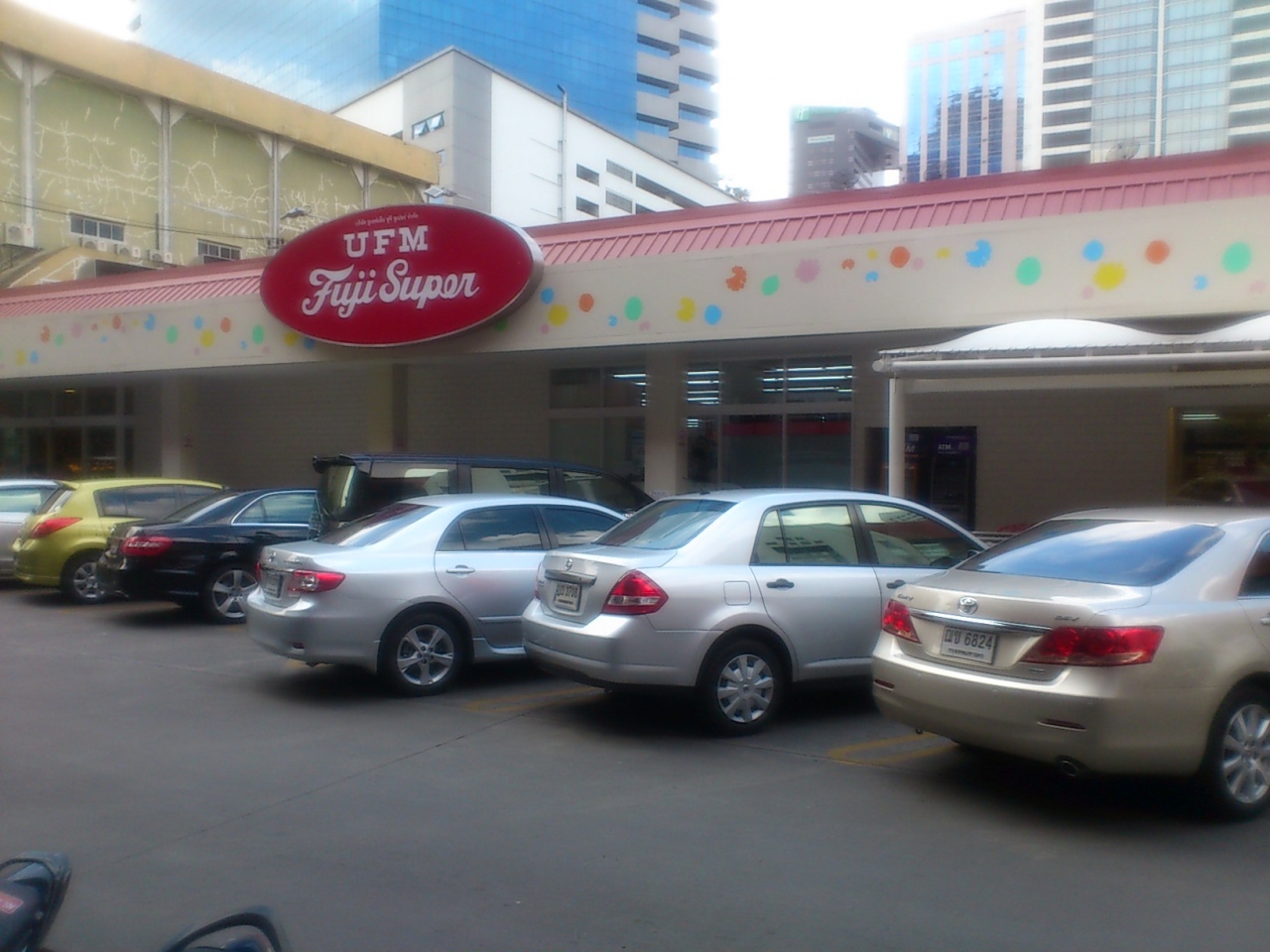 スクムビットの日本人が多く住んでいる所にある食品スーパー。日本から輸入した食品が沢山売られており、駐在員の奥さん連中や、お金持ちの現地人で賑わっています。但し、日本からの輸入食品は、日本の値段に比べ2~3倍もします。このスーパーの周囲には、日本人相手のお店が沢山有ります。