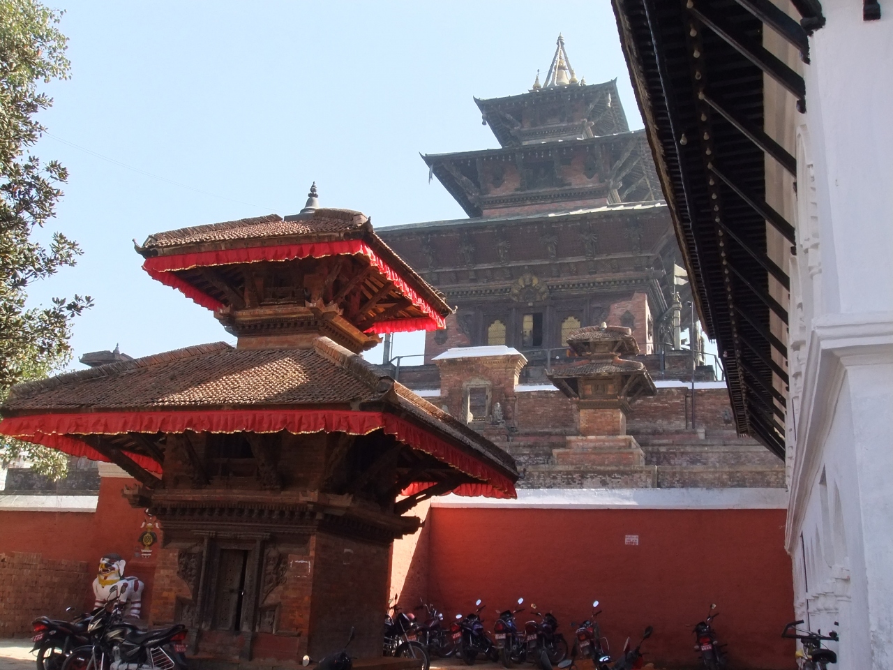 ナサル・チョークを出て北に直進するとほかの建物より高い場所に建っている建物です。クマリの化身であるタレジュー女神を祀った寺院で、年に一度ダサインの時にだけヒンズー教徒に開放されています。タレジュー女神の像がある部屋には、王族のみが入室を許されているので、普段は中に入れないので、近くに行って建物をみましょう