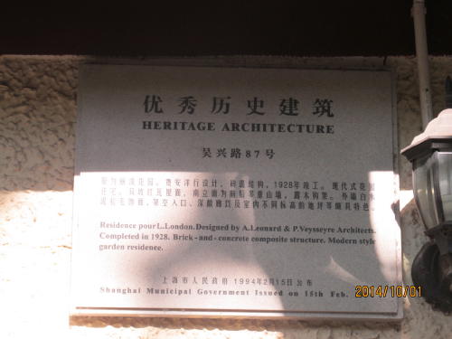 フランス租界の呉興路は南の端の筆嘉浜路から主要道路の准海中路までを南北に結ぶ路です。途中衡山路を越えて行きます。隣の呉興路と同じ、落ち着いた高級住宅地です。
