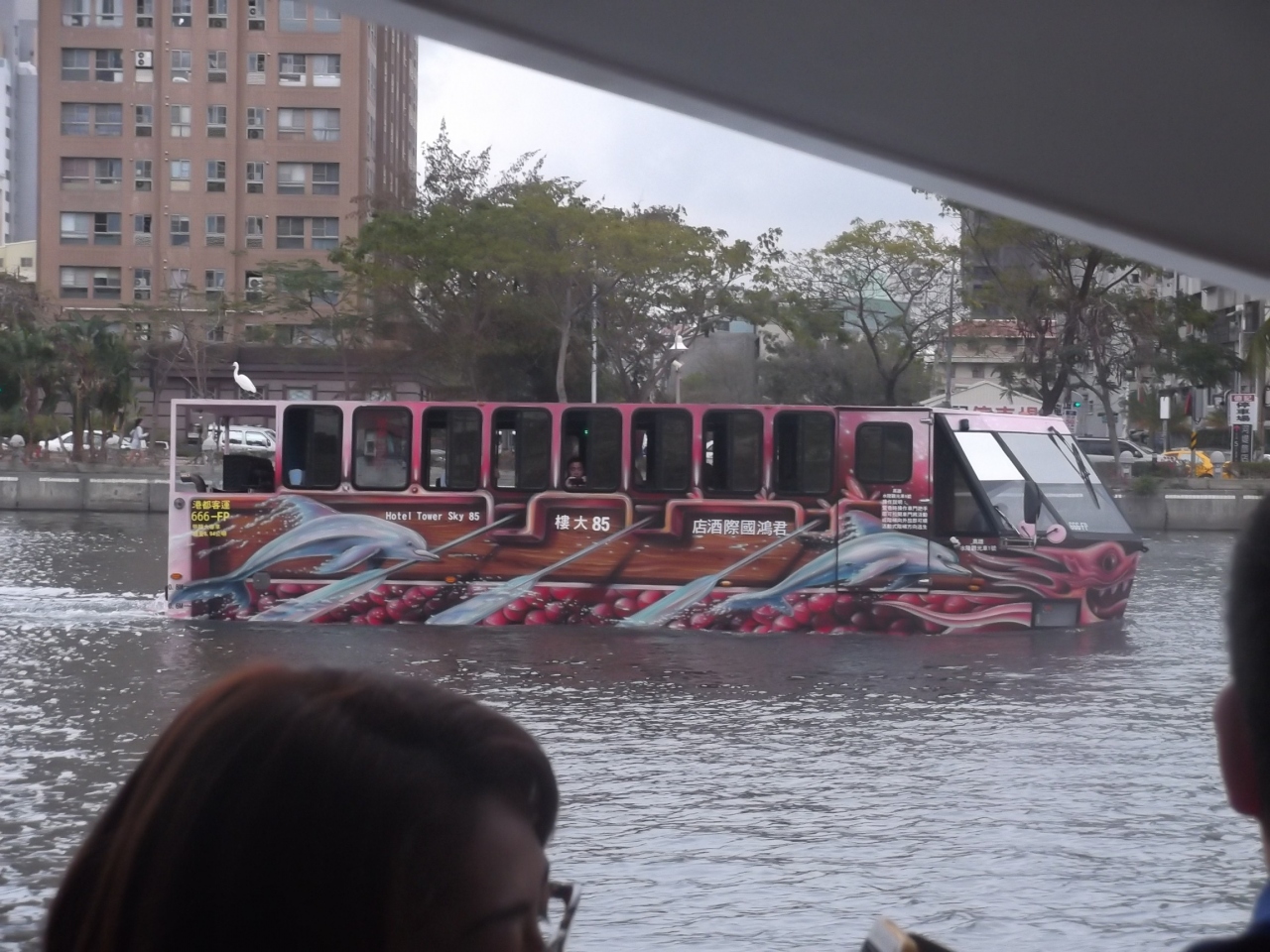 愛河クルーズで水陸両用車を見ました