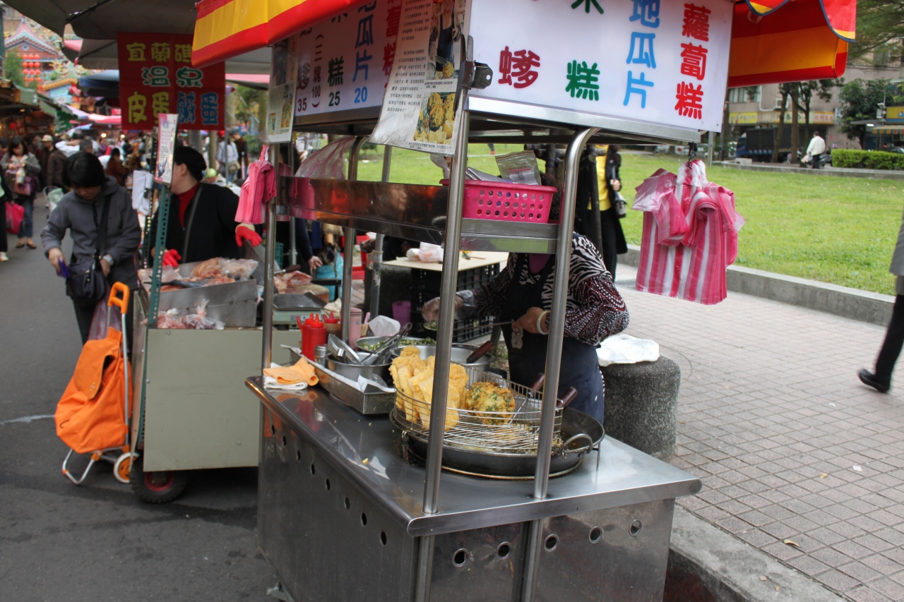 生鮮食品から、衣料品、雑貨まで狭い道を挟んで商品があふれ、朝早くから買い物をする台北市民で賑わう。