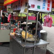 雙連駅から民権西路駅にかけての歩道沿いにずらりと店が並ぶ。