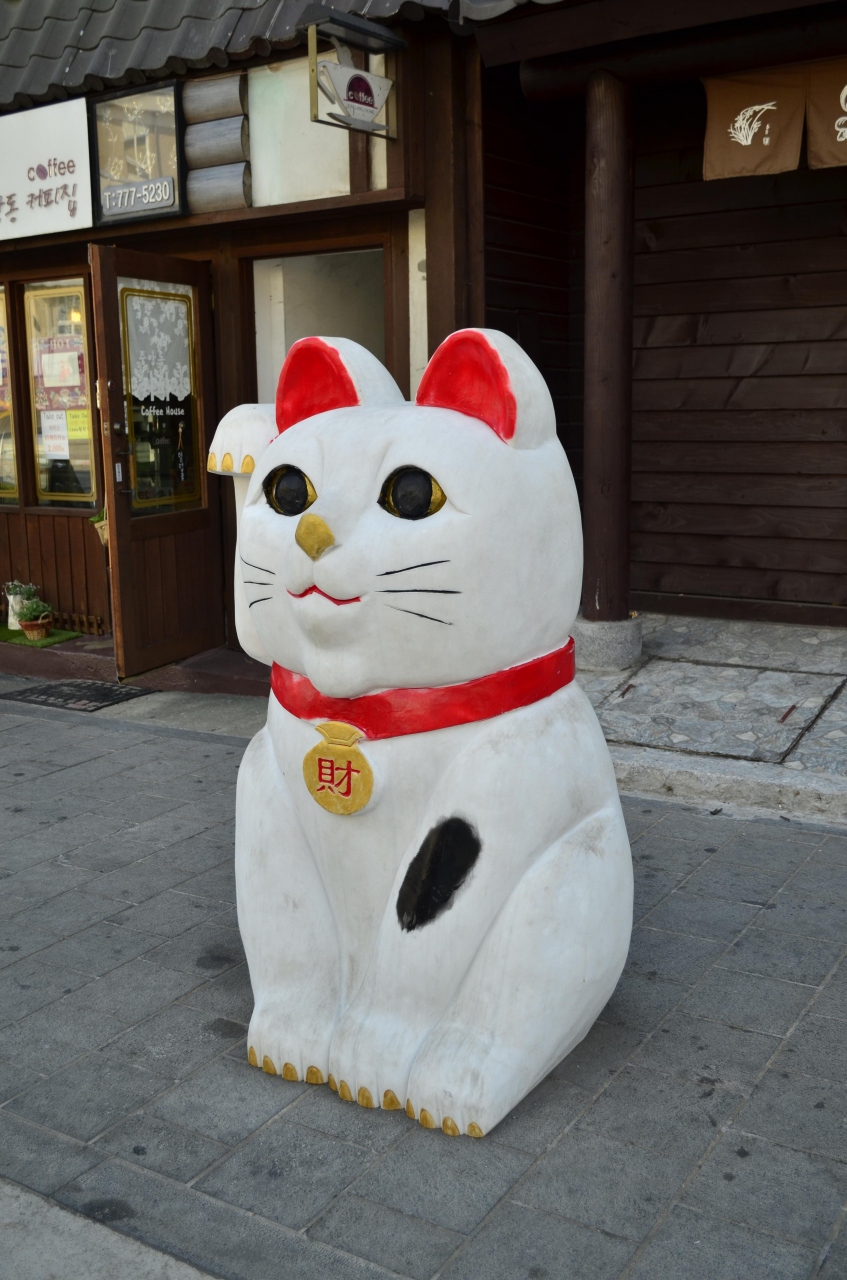 作られた感のある町並です。中区役所の前にはドーンと招き猫があり、