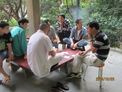 フランス租界の襄陽公園は准海中路と襄陽北路の交差点脇に入り口があります。繁華街の准海中路にあり周辺の住民だけで無く、昼休みには周辺の企業、商店のサラリーマンも憩いの一時を過ごす、都会のオアシスです。1日中いろんな事をして過ごしています。奥にレストランと公衆トイレがあります。