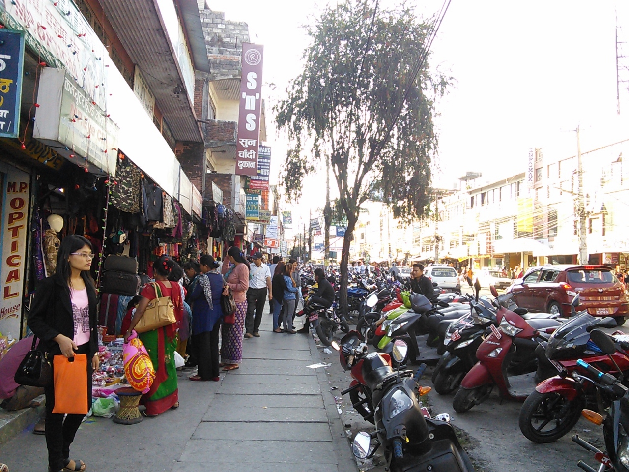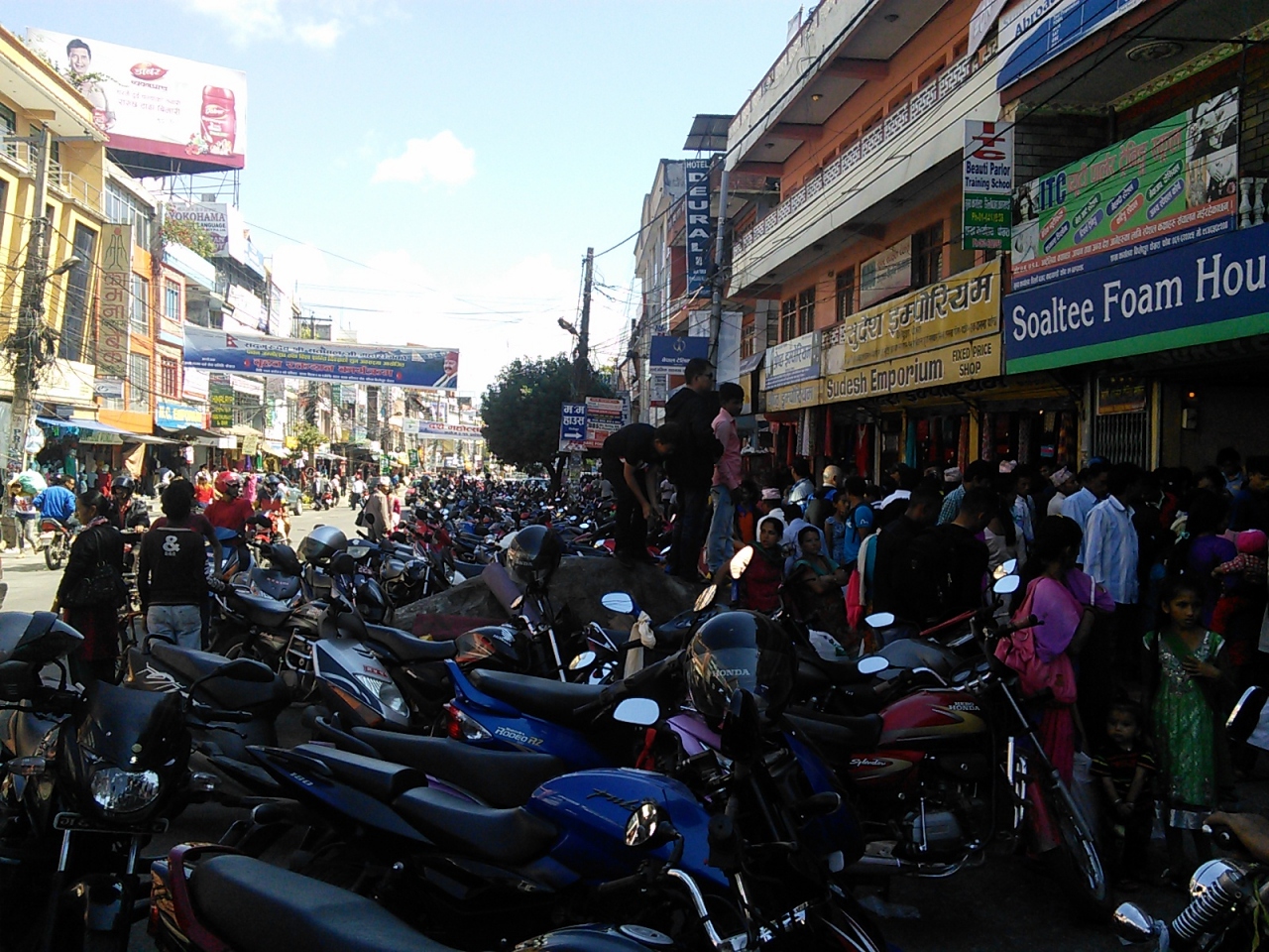 ツーリストエリアであるレイクサイドではあまり“町”の喧騒は感じられませんがナヤバザール周辺は地元の人々の生活の場であり活気に溢れています。歩道には露店が並び、店先にはバーゲンセールの人だかりも見られとても賑わっています。ショッピングモールやスーパーマーケット、デパート?なんかもあります。 駐車場不足なのか路上に停められたバイクの数もすごくポカラがネパール第二の都市であることを思い出させてくれます。