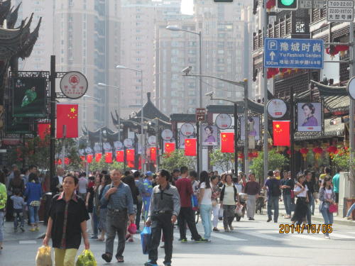 国慶節の日曜日、国慶節のイベントを探して豫園にやって来ました。日本人観光客はこの地域全体を豫園と言います。中国人は城隍廟といいます。タクシーに乗る時に注意しましょう。東京も浅草寺の門前全体を“あさくさ”と言うのと同じです。