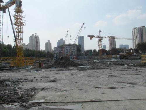 フランス租界の合肥路は肇周路から重慶南路まで、片側再開発、片側古い住宅。