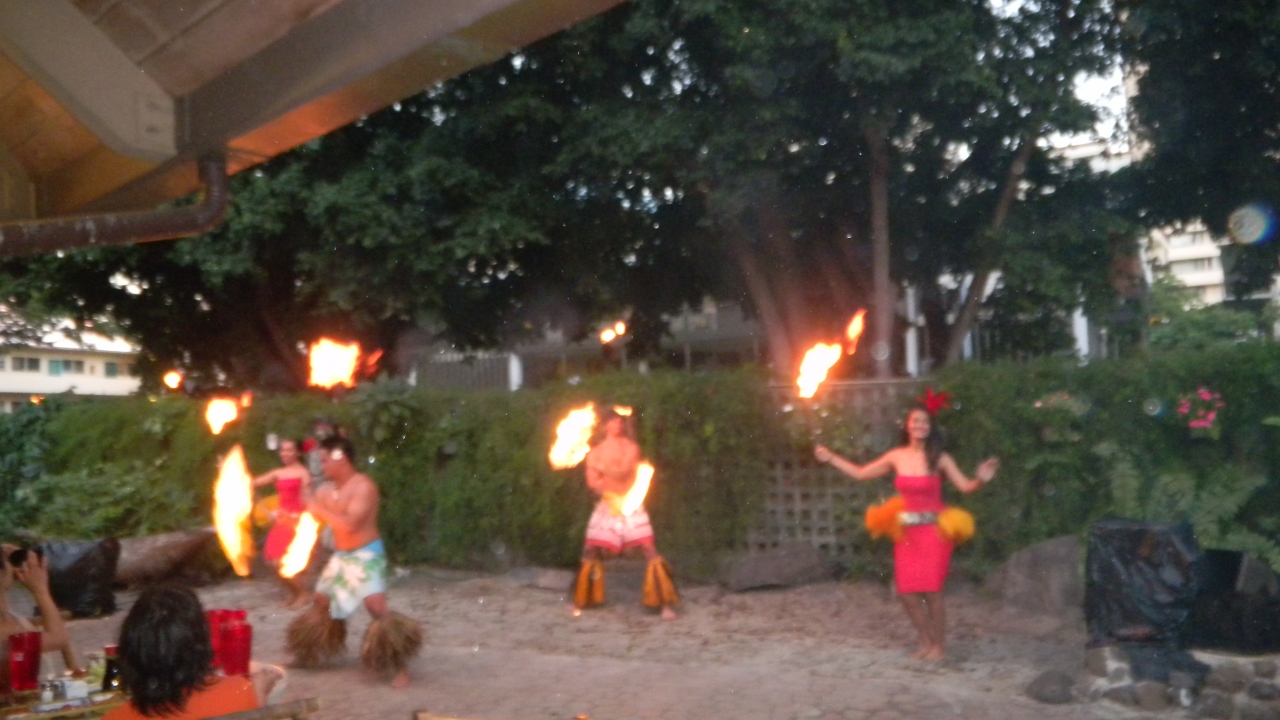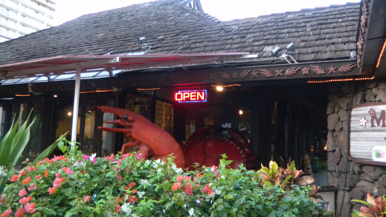 ワイキキの真ん中、クヒオ通り沿いに平屋で趣のある建物。入り口にかがり火があり、すぐ分かります。