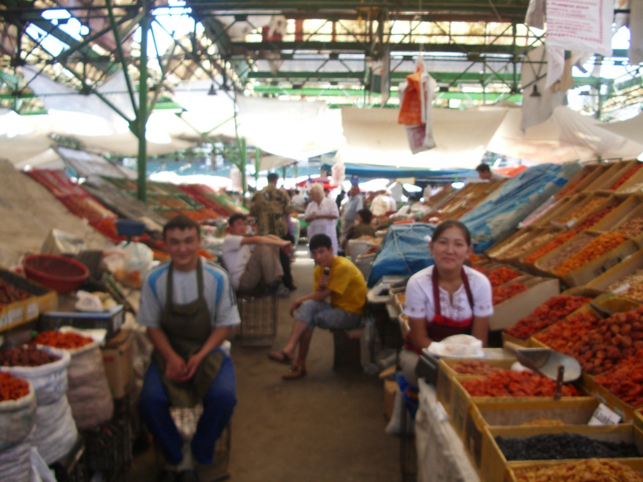 ビシュケクで最も大きなバザールといえば、オシュバザールが挙げられる。市内中心部から2~3キロ離れており、歩けない距離ではないが、市内中心部からはマルシュルートカでで目指すと便利。バザールではスリも多く、地元の人でも手荷物に十分注意を払う。買い物や市場の雰囲気に気を取られ、荷物から目を離したり背中に抱えたままにしなように。