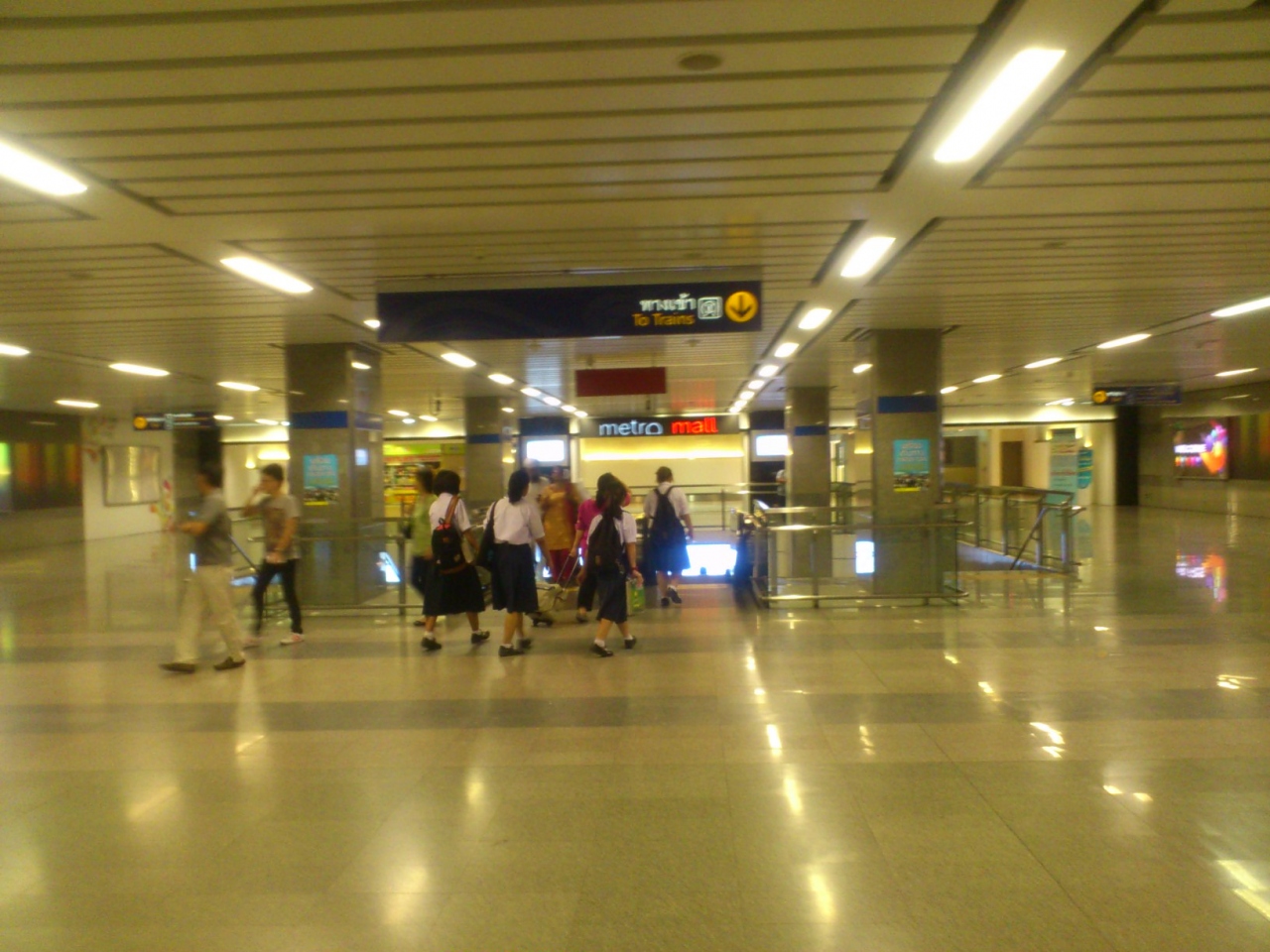 地下鉄を利用してウィークエンドマーケットに行く際は、この駅で下車です。プラットフォームが有る階と地上との間には、メトロモールというショッピングモールが有りますが、利用する人も少なく、開店休業状態のお店が多いです。地上に出れば、BTSスカイトレインのモーチット駅が有ります。