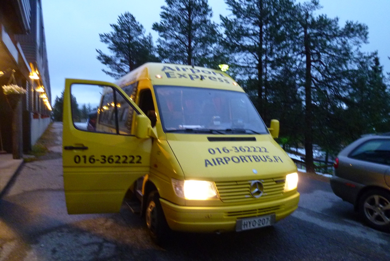 空港を出るとすぐに黄色いバンみたいな車が止まっているのでわかりやすかったです。