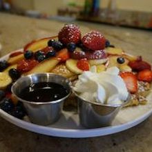 トッピングするフルーツの種類は選択肢がありますが(個人的にはリンゴは好き嫌いがあるかと思います)、全部のせにするとフルーツ盛りだくさんで色々な味を楽しめます。どこのパンケーキ店もそうですが、ひとりで食べるにはけっこうなボリュームなので、パンケーキに関してはふたりでシェアするぐらいがちょうど良いかもしれません。
