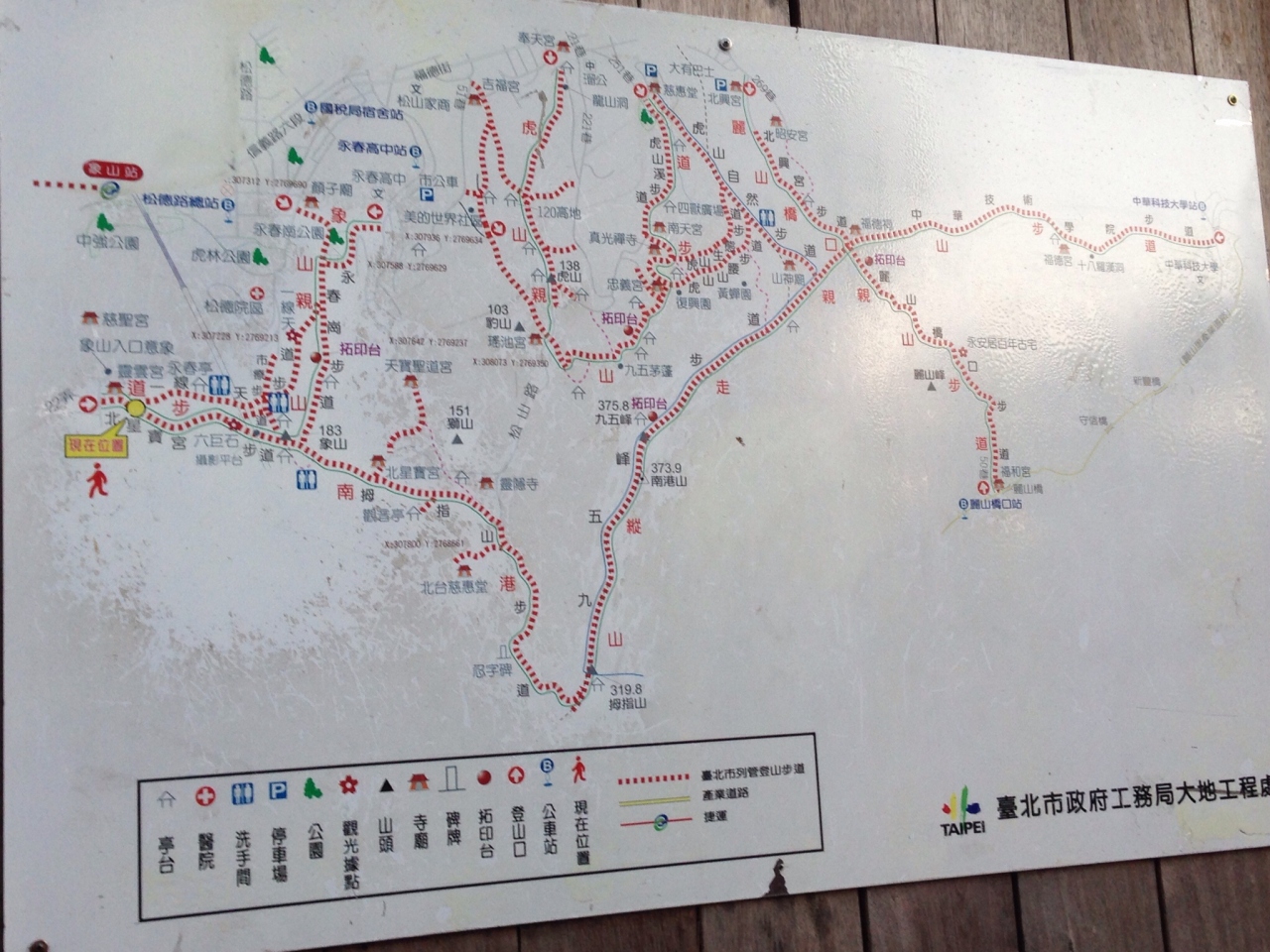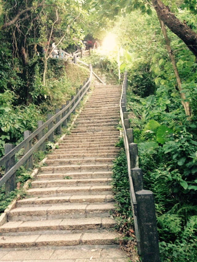 タクシーに乗り「象山登山口」と書いたメモを渡すと霊雲宮の手前で降ろされ指をさして「そこだよ」と教えてくれました。17時15分頃から登り30分頃展望台に着いたと思います。少し登ったところで飲料水は売っていましたが持参したほうが良いです。階段を登って展望台を目指しますが、かなり急で階段の高さもまちまちです。みんなハーハー言いながら登ってました。私は5回ほど休憩しながら登りました。日本人は見かけませんでした。展望台に着くとちょうど日が落ちる頃で、素晴らしい眺めを見ることができました。帰りも同じ道を戻りました。ところどころ街灯はついていましたが、急な階段を下りるので膝にきます。注意して下さい。無料でこの景色を観れるのであれば登る価値ありだと思います。