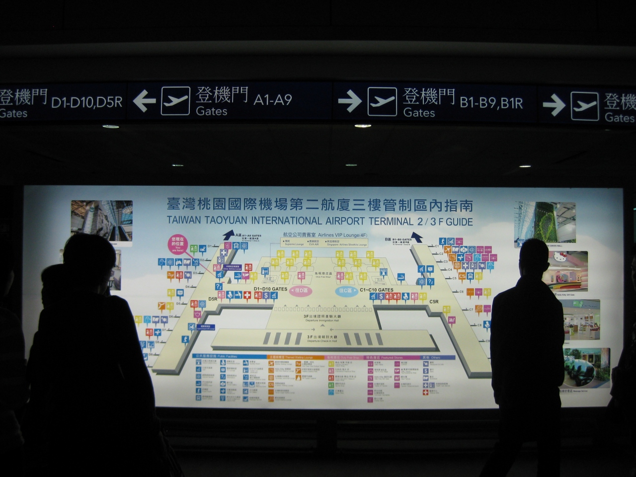 台北から車で1時間ほどの空港。台湾の玄関であるが鉄道が都心へ直接アクセスしていないため車の利用が多い。高速道路が整備されており渋滞しなけれなストレスは無い。空港内は広く、遠方のゲートまでは20分もかかるなど少し広すぎといった感じ。バスの利用を考えてはどうか。免税店は充実している。町中の免税店より価格が安い感じで帰国の際免税店を利用するのがいいようだ。セキュリティーチェックが厳しいが、やり方が悪く、大混雑になっている。また、お迎えの場所に関して目印になるようなところを準備しておいていただくといいかも。