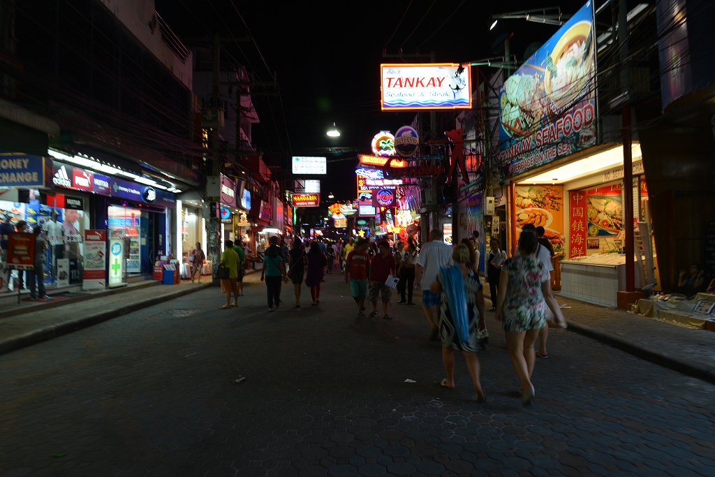 夜は賑やかで歩行者天国になっていて、ゴーゴーバー、レストラン、エンターテイメントをする人々など歩くだけでも面白い。